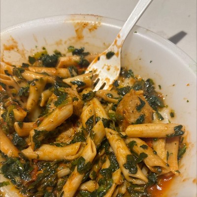 so. much. spinach. like almost too much, and i like spinach! though if that's a non-negotiable & you're going to keep the amount of spinach in the average meatball marinara bowl, i'd suggest including more pasta to balance out the greenery. however my biggest gripe with this is that i think that this could've definitely benefit all around from having more sauce, as the meatballs were a bit dry. everything aside i loved the pasta & chunks of tomato too, tastes great