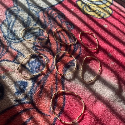 I love these bracelets! The design is very elegant, cute but simple and boho!!! It’s “on trend” if I do say so myself and spices up your jewelry game. The material quality is pretty good, I haven’t had any issues so far, just note they are stretch bracelets (made out of a fairly flexible plastic-y string) so you have to be careful if you are someone with larger wrists. However, the price is a stretch for around 7 little bracelets. They cannot be that expensive to make. Overall, 4 stars! Almost nothing gets 5 stars from me personally ;)
