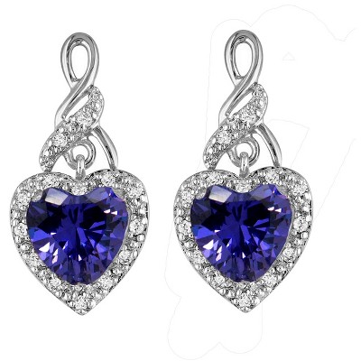 Heart Shape Blue Cz Drop Stud Earrings Womens Ginger Lyne Collection