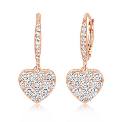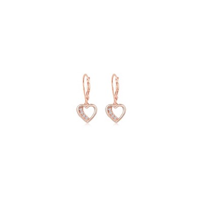 Heart White Crystal Rose Gold Brass Plating Hypoallergenic Kids Leverback Earrings pink s