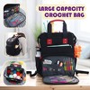 - Our crochet for beginners kit includes an extra-large yarn organizer with 3 holes that provide easy access to yarn and prevent tangling, USB charging port, 32 pockets for crochet yarn and supplies, and cushioned backpack straps.