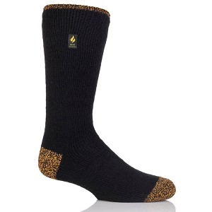 Keep feet warm on the coldest of days and pull on this pair of solid color, medium thickness, crew length, reinforced Heat Holders Worxx® for men, the warmest thermal sock.