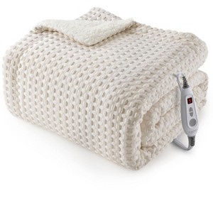 Heated Blanket Throw, Waffle Weave Electric Blanket Fast Heating with LCD Controller, 10 Heat Levels & 1-12H Time Settings Auto Off