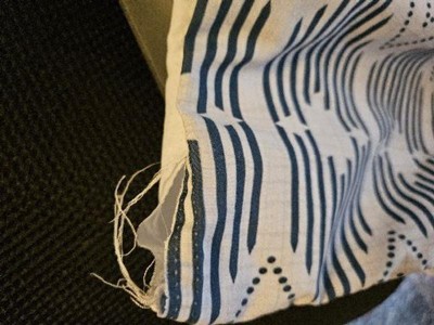 I read bad reviews aboutthis design series Target is doing, but ordered anyway. Sadly joined the bad review team tho, definitely do not waste your time or money. It is thin/loud/parachutey material, but that's not the main problem. The design itself looks piexlated, low-res, and stretched out in scale across the comforter, not at all as pictured in the photo. It is also bright maritime navy! Not a subdued grey-blue as in the photo. What is shown in the photo is closer to the size of the print on the two included pillow shams, but the main comforter itself does not look like that at all! When I was opening the package I also noticed the"Society6" tag, which is a print on demand art service anyone can use online.
