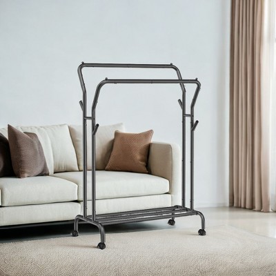 Heavy-Duty Clothes Rack with Dense Mesh Storage Shelf 25.4mm Metal Garment Rack with Wheels and 2 Brakes, 110 lb Load Capacity Clothes Rack