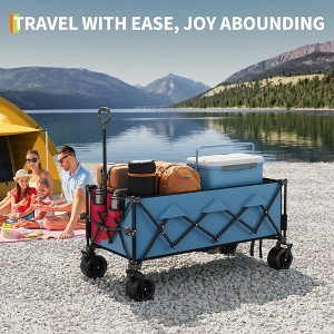 Heavy Duty Collapsible Wagon - Extra Large Foldable Utility Cart with All-Terrain Wheels & Cup Holders (Blue, 350lb Capacity)1?? Professional-Grade Mobility? 4 oversized 7" x 4" wheels (2 locking/2 swivel)