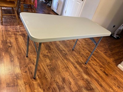 [This review was collected as part of a promotion.] I received the NPS 24x48 Heavy Duty Folding Table as a courtesy to test and review. This company first off had extremely quick shipping on their product and shipped it very durably. If I did not know better I would have anticipated its contents to be very delicate glass and for that alone, I was impressed. This table was the perfect height for our needs and is very light and durable. This table is versatile in use, from a mobile work station to a nice condiment and bbq table for summer events to a lemonade stand or even a Girl Scout cookies table set up. The table top is a plastic composite like in grey and would be easy to clean with a magic eraser. The legs are nicely built with a slide bracket feature to lock the legs when open and a locking feature when the table legs fold to store away. This table is easy to store with its slim folding capabilities. I am not sure that I would purchase for the price listed and our needs, but would recommend the table for sure.