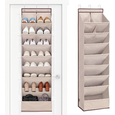 【8 SHELF LARGE POCKET FOR LARGER CAPACITY】The over the door shoe organizer measures 16.54W x 6.69D x 56.94H inches with 10 large pockets in different size capable of holding up to 16-23 pairs of shoes, allows to fit perfectly on narrow doors. An ideal space-saving solution for closets, dorms, and RVs.