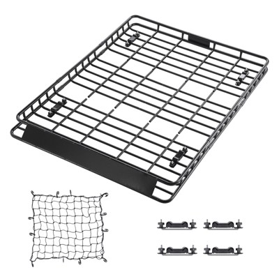 Heavy Duty Roof Rack, Rooftop Cargo Carrier Basket with Waterproof Bag, Tie Down Strap, Net, Rack Extension and Car Top Luggage Holder, 200Lb Capacity