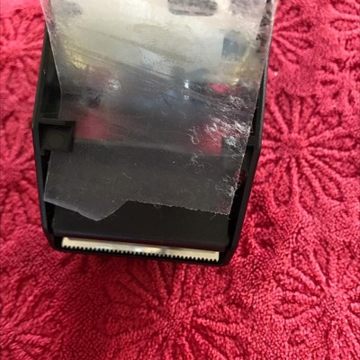 submitted byPotential Customer - 17 days agoA: Hi DE Mom - Thank you for reaching out. We appreciate your interest in Heavy Duty Tape with Cutter 50yd. Pull about a six inch length of tape length of tape off the roll. Turn the dispenser over so the blade is facing up. As you pull the tape toward the blade you will see two tabs sticking out from with side of the path leading to the blade. The tape goes under these tabs as you pull the tape toward the blade - Emma