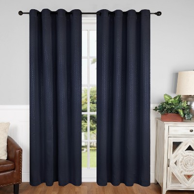 Heavyweight Velvet Curtain Rod Pocket Panels Set of 2 Navy 120”
