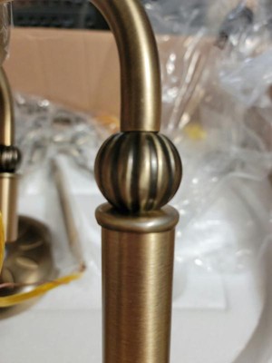 [This review was collected as part of a promotion.] This is a beautiful vintage style that adds so much warmth to my kitchen nook area. I have it hanging over my small breakfast table where I enjoy my morning coffee. The shade is white with a black trim finish and the brass from the fixture adds just the right amount of charm. The piece that is on the ceiling even has a nice detail finish that matches the bottom of the light, rounding out the vintage vibe. This was very easy for my husband to install where the current light fixture was. Comes with enough chain to hang up to 91" and the 2 locking chain links really helps to make this an easy light fixture to hang and install.