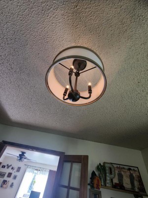 [This review was collected as part of a promotion.] This is nicer than I expected. I was worried the drum shade would be flimsy or cheap, but it’s perfect! Light diffused through nicely without it being overly transparent. The hardware including chain and ceiling mount are a beautiful rich bronze.