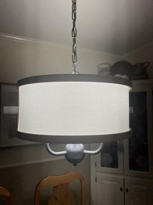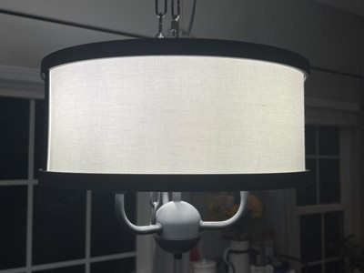 [This review was collected as part of a promotion.] I was extremely happy when I opened the box for this pretty chandelier. I have been wanting a new light for over my diningroom table. This is exactly what I wanted. I love the soft texture on the white shade and the black trim is very stylish. My husband had no trouble putting it up. Kichler is a brand I trust.