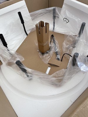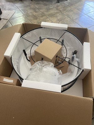 [This review was collected as part of a promotion.] I love this chandelier. It is very well made and looks great in my dining room. Right out of the box it was perfect. It came with everything needed to install it, except for the tools. The shade doesn't hinder the light too much. So my room is still nice and bright. Be forewarned. It is HUGE! It takes up almost the whole ceiling area! The size of the box is the whole chandelier size. It is much bigger around than i thought it would be. But I am still very happy with it.