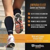 Support tired, sore calves with Heelbo Copper Infused Calf Compression Sleeves. Designed for men and women, these footless sleeves provide targeted compression to help ease shin splints, cramps, varicose veins, and everyday leg fatigue. The large size fits calves 15"–18" in circumference. A sleek, all-black design pairs easily with activewear or workwear, while the breathable, moisture-wicking fabric blend with copper-infused yarn helps manage odor and keeps you comfortable through long days on your feet or intense workouts.