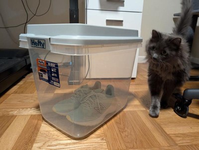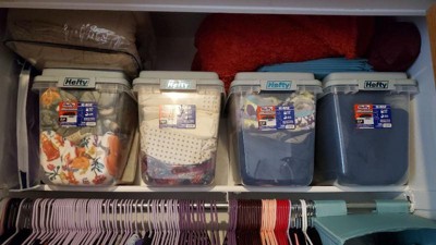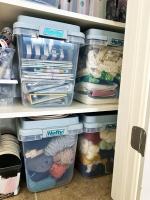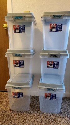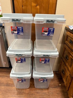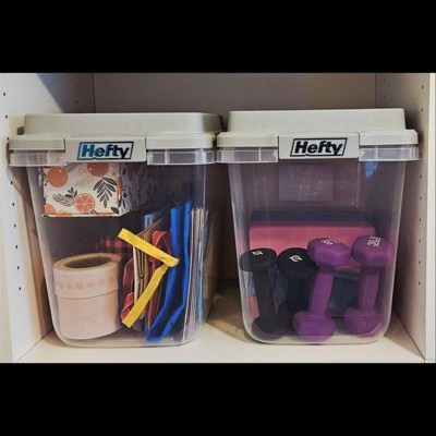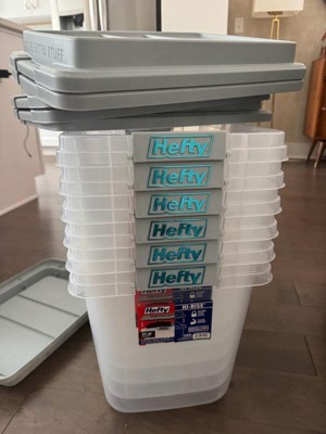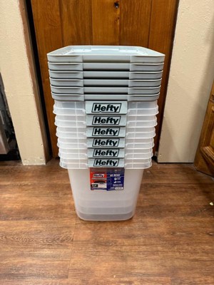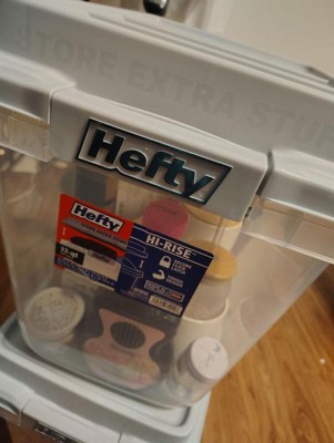 Hefty 32qt Slim Clear Plastic Storage Bin with Gray HI-RISE Stackable Lid: Locking Handles, Universal Utility Totes