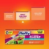 Maximize the freshness of your leftovers and other food with Hefty Slider Storage Bags. Hefty Slider Bags have a stronger seal than Ziploc bags when shaken, dropped or stacked. The patented MaxLock track can be opened with a single sliding motion, and it clicks closed so you know your food will stay fresh. In addition to carrying food, Hefty Sliders are also great for storing kids' extra clothes, school supplies, and other small household items. With three sizes to choose from, you're sure to find one that fits the task at hand.