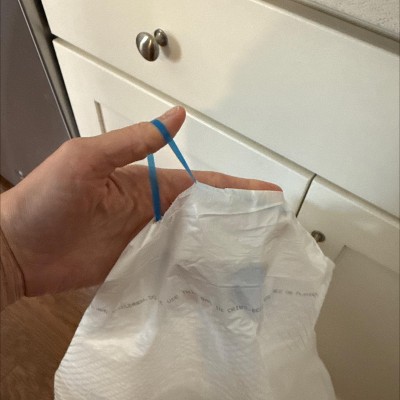 [This review was collected as part of a promotion.] This waste bag has a pleasant scent, though it’s a bit too strong for my liking. The material is thinner than the one I usually use (orange), but still strong enough to hold the trash without tearing. See the photo for a quality comparison between the two.