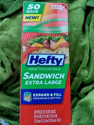 [This review was collected as part of a promotion.] I saw that Hefty Press to Close Extra Large Sandwich Bag 50 count on the shelf and decided I needed them. My family tends to make larger sandwiches and the normal sandwich bags can be too small. They told me these are the best and to keep buying them