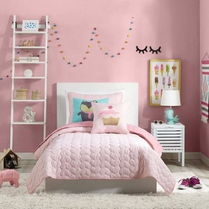 Brighten up your sweetheart’s room with the Helaine quilt set. This quilt and sham set features a heart quilting pattern on a solid pink background. The quilt can be used as a complement to your existing bedding or stand on its own. The fabric is super soft poly with 100% polyester fill.