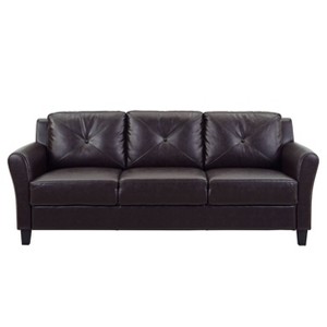 Helena Faux Leather Sofa Java Brown - Lifestyle Solutions: Upholstered, 3-Seater, Tufted Back, High-Density Foam