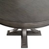 Make a statement in your dining room with the Helena Round Dining Table. This round dining table features a Chardon gray wood finish with distressed edge detail, giving it a traditional vintage design. It also features four reinforced support beneath the center of the table for maximum durability. Assembly required.