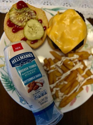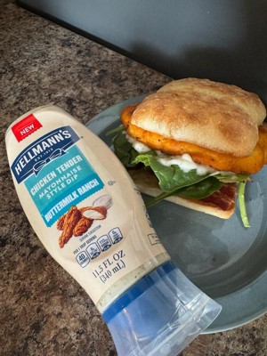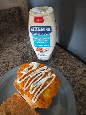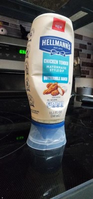 - Made with real buttermilk, Hellmann’s Buttermilk Ranch Chicken Tender Mayonnaise Style Dip offers a creamy, tangy, and savory flavor.