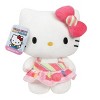 - HELLO KITTY: The 8-inch Hello Kitty plush toy is made of high-quality materials and dressed in a candy-themed outfit, complete with a candy-striped bow