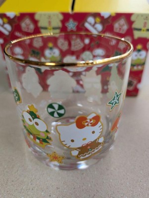 Fill holiday gatherings with laughter, joy, and the delightful company of your favorite Sanrio characters! Our set of 4 short glasses features festive wraparound designs of Badtz-Maru, Chococat, Cinnamoroll, Hello Kitty®, Keroppi, Kuromi®, My Melody®, and Pompompurin, all dressed up in their gingerbread finest. With their comfortable grip, sturdy base, and charming gold rims, these glasses are designed for easy sipping and spill-free enjoyment. Add a touch of kawaii to your holiday celebrations!