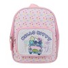 Travel in style with this adorable pink Hello Kitty 2-pack luggage set. The set includes a vibrant 16" rolling luggage featuring Hello Kitty and a mouse driving a jeep, complete with a surfboard and geometric art in the background. Accompanying this is a matching 12" mini backpack, perfect for carrying essentials. The luggage features two rolling wheels and a retractable handle, while the backpack has two zipper pockets and adjustable shoulder straps. Made with durable materials, both bags are designed for easy spot cleaning, making them a delightful choice for fans on the go.