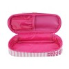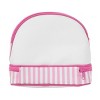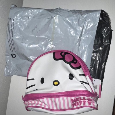 Keep your beauty essentials organized with this adorable pink dome-shaped Hello Kitty cosmetic case, featuring a large image of Hello Kitty's iconic face. Designed for both style and function, this case includes a zipper closure and a bottom zip compartment with an elastic pocket for extra storage. Made from durable PU materials, it measures 8" H x 9" W x 3.5" D and features a wipeable exterior, making it easy to clean and perfect for daily use or travel.