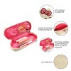 Bring sweet sparkle to your routine with this Hello Kitty cosmetic pouch. Featuring a design of Hello Kitty’s head with 3D ears and her signature pink bow, this pouch delivers charming character style and standout flair. It includes a dome zipper compartment and a bottom zipper section with an elastic pocket for easy storage. Crafted from glitter PVC, it ensures reliable use. Wipe it clean for easy care.