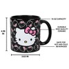 Add a touch of Hello Kitty to your daily routine with this black 16 oz ceramic mug. Featuring an adorable image of Hello Kitty's face, this mug reveals a hidden surprise. When hot liquid is poured in, outlines of Hello Kitty's face appear. Made from high-quality stoneware, it measures 3.46" x 3.27" x 4.6" and is microwave and dishwasher safe for easy use and cleaning.