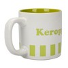 CUSTOM DESIGN: An image of Keroppi decorates this white ceramic mug while green letters on the other side spell out the character's name. Fans of the Keroppi character and the Hello Kitty series will love this fun design.