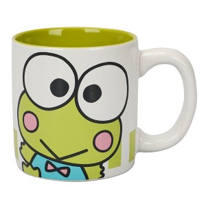 Bring a little hop to your mornings with this Hello Kitty ceramic mug. The mug comes in white with a green interior and features an image of Keroppi the Frog. Green letters on the other side spell out Keroppi's name. The mug is made with high-quality ceramic materials and holds 16 ounces of your drink of choice. Put some pep in your step with this Keroppi ceramic mug.