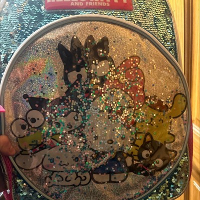 Ultimate Squad Goals: Show off your Sanrio besties! Hello Kitty, My Melody, Kuromi, Badtz-Maru, Keroppi, Pompompurin, Chococat, and Cinnamoroll all come together on the glittery front pocket!