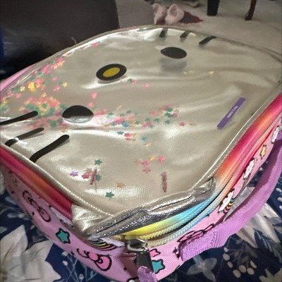 Get your adorable little cutie this stylish silver Hello Kitty Lunch kit. Designed with floating star confetti, rainbow gradient zipper tape and a 3D bow applique, your Hello Kitty fan will not be disapponited.