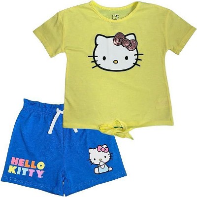 ADORABLE HELLO KITTY DESIGN: These 2-piece sets feature an irresistibly cute Hello Kitty graphic on the front of the tops, adding a delightful touch to your little one's outfit. The iconic character brings a sense of fun and playfulness to any occasion, making these sets perfect for casual wear or special events. Choose from 4 different colors and styles options including Pink, Multicolor with tier skirt or Yellow, Blue with Tulle Skirt.