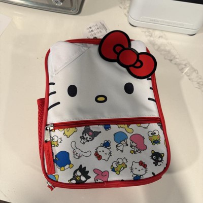 Turn mealtime into a kawaii celebration with this super-adorable Hello Kitty lunch bag! Designed to stand out with 3D ears and a red bow, this lunch bag is a must-have for fans of all ages. The front showcases Hello Kitty’s sweet face and is accented with a playful collage of her Sanrio friends—Keroppi, Badtz-Maru, My Melody, and more—for a full dose of nostalgia and fun.