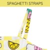 • All over print design; Spaghetti straps; Pull on closure; Fashionable ruffle hem; Cute and casual summer sundress; Cute shirred dress with an elastic smocked top for a comfortable fit and fashionable look