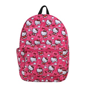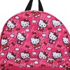 Embrace the charm and practicality of Hello Kitty with the officially licensed Hello Kitty Toss AOP with Hello Kitty Verbiage on Pink Ground Travel Backpack. This backpack is designed to cater to your modern lifestyle, comfortably accommodating laptops up to 15 inches while providing stylish organization. The back panel features a trolley pass-through, allowing you to easily secure it to luggage handles during travel. With a side pocket and a dedicated laptop compartment, smart organization is at your fingertips. Padded shoulder straps make carrying a breeze, even when the backpack is fully loaded, and the fully lined interior adds an extra layer of durability and protection. Crafted from high-quality polyester, this backpack combines functionality with Hello Kitty's adorable design, making it a perfect companion for work, or travel. Wipe clean with a damp cloth for easy maintenance.