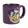 Celebrate your favorite season with this adorable Hello Kitty coffee mug! On one side, the dark purple ceramic mug boasts a big colorful image of Hello Kitty and her friends dressed up in costumes and ready to "Trick Or Treat." On the other, the Hello Kitty logo with Witch Hello Kitty flying across a moon. With a generous 16-ounce capacity, it's perfect for enjoying your favorite beverages. Crafted from durable ceramic, this mug is built to last and is both microwave and dishwasher safe, ensuring convenience and ease of use. Elevate your coffee or tea routine with this custom-designed, high-quality Hello Kitty coffee mug that's perfect for collectors and enthusiasts.
