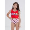 Your Hello Kitty fan is ready for a fun day with her favorite cartoon cat in this adorable Hello Kitty and Friends one-piece swimsuit! This stylish sleeveless bathing suit features a fashionable cutout design with a tied waist, a cool all-over print of red bows, and cute cupcake artwork of Hello Kitty and her friends My Melody and Pompompurin that your little girl will love to wear! Made of a quick-drying material that is comfortable to wear in and out of the water, this sun-protecting swim suit is perfect for all day adventure and play!