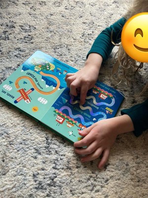This book has shiny transportation trails to follow with your finger. It is very durable and the illustrations are adorable. The verse is cute and rhyming. It is sure to become a family favorite. It is already popular in our house.