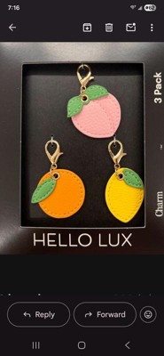 I love my Hello Lux colorful fruit charms! They're so fun to decorate my keys or purse/bag with. They have high quality lobster clasps which are easy to attach and detach and feel secure. The faux leather looks great with my other accessories and really shows off my style.