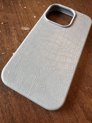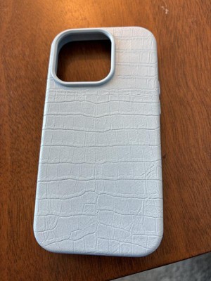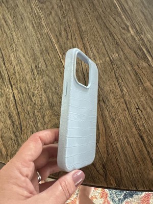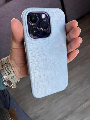 Protect your iPhone 14 Pro in elevated style with the Hello Lux Blue Croc Wrapped Phone Case. This durable case is wrapped in textured faux leather for a sleek look and comfortable grip. The sturdy metal camera ring and buttons add lasting strength, while the soft microfiber lining helps protect your phone from scratches. With precise cutouts for easy access to all ports and buttons, this case blends fashion and function in one refined accessory for your iPhone 14 Pro.