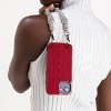 - Metallic red strap loops for wristlet or crossbody attachment and easy carrying