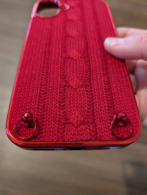 iPhone red swater case is adorable. The placement if the camera lens and charger is perfect. Its very durable and an easy to grip case. I would use tbis around the holiday season. Its a great stoc