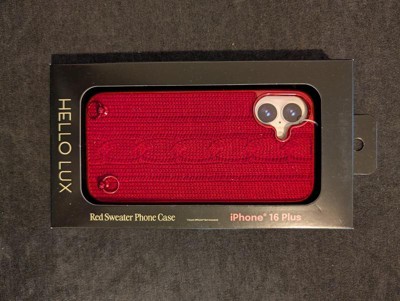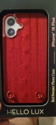 The Hello Lux Red Metallic Knit Sweater Case wraps your phone in comfort and standout style. A cozy knit sweater back pairs with a plush microfiber lining to protect against scratches while adding a soft, comfortable feel in your hand. The durable dual-layer PC and TPU design absorbs everyday drops and bumps to keep your device secure. Sleek red metallic plated sides and a matching camera bumper bring standout shine, while built-in metallic strap loops let you attach a wristlet or crossbody strap for hands-free carrying. Designed specifically for the iPhone 16 Plus, it’s the perfect mix of protection, style, and functionality.